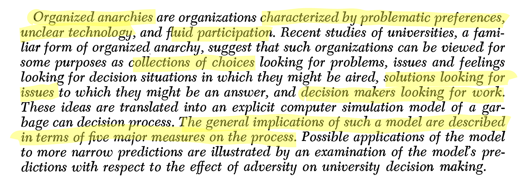 Michael D. Cohen, James G. March und Johan P. Olsen: A Garbage Can Model of Organizational Choice